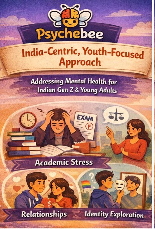 Psychebee addresses mental health concerns of Indian Gen Z and young adults by contextualizing psychological concepts within culturally relevant experiences such as academic stress, family expectations, relationships, and identity exploration.